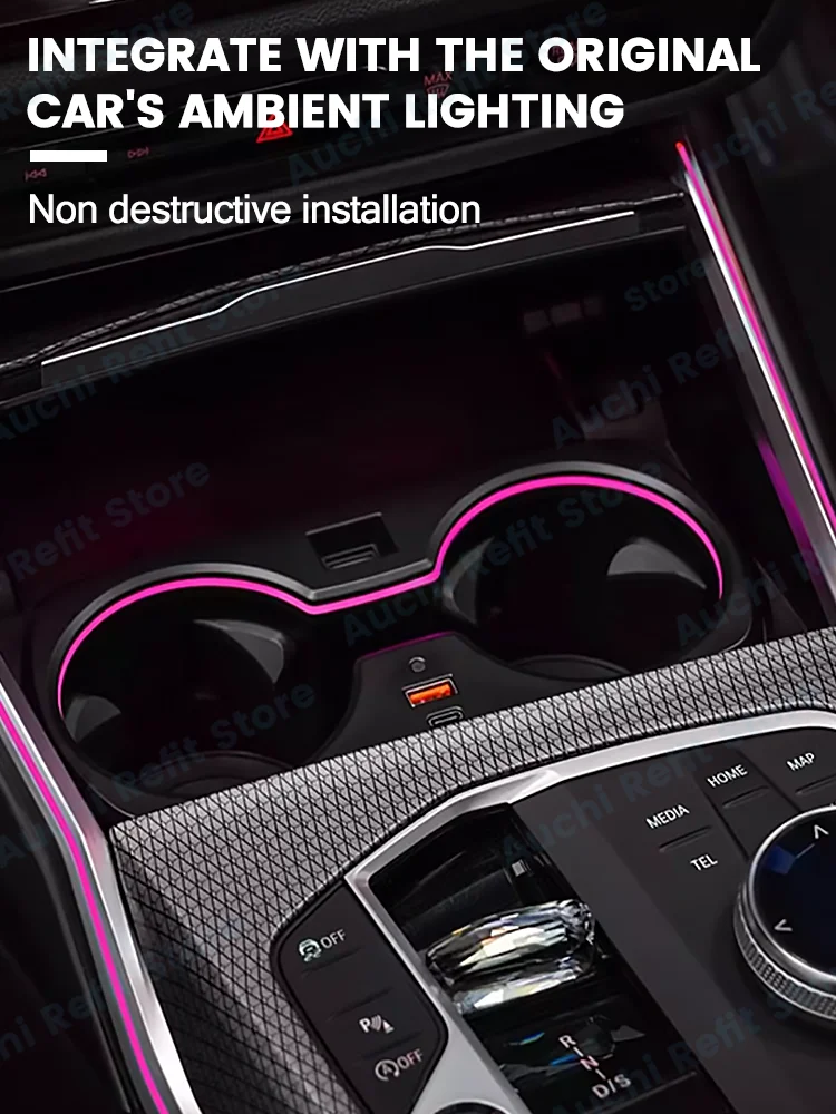 11 Colours LED Cup Holder Lamp For BMW 2/3/4 Series i3 i4 G20 G23 G26 G80 G82 G42 M240i Car Cup Frame Decoration Ambient Light