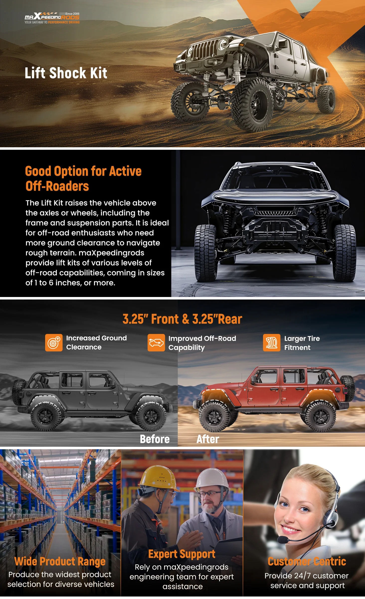 3.25in Suspension Lift Kit W/ Shocks For Jeep Wrangler JK 4-Door 2007-2018