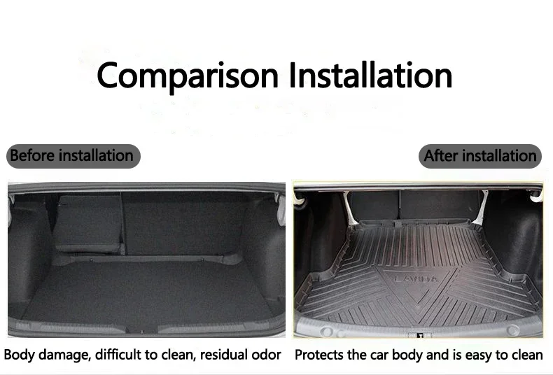 Shipping Notes: Due to the size of this product, it can only be shipped folded. To lay it flat, turn it over and fold it again. Or put the trunk mat under the hot sun for a few hours, and then put it in the car for a day or two, it will return to its original shape. Also, the product has some smell, please don't worry, just ventilate.