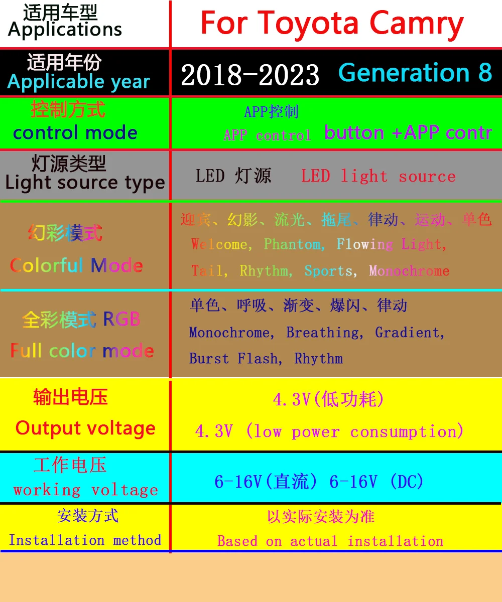 New LED Car Inner Ambient light For Toyota Camry Generation 8 2018-2023