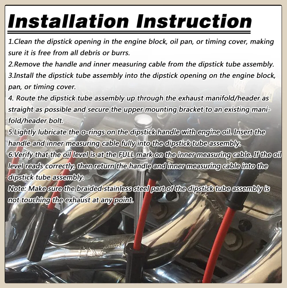 Note: Make sure the braided stainless steel part of the dipstick tube assembly is not touching the exhaust at any point.