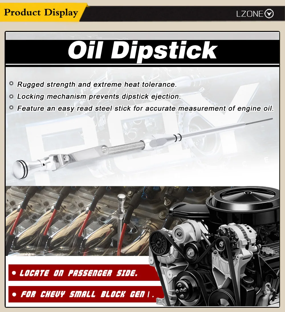 LZONE Engine Oil Dipstick Tube 80s later For Chevy SBC 267/305/350/400 4.4/5.7/6.6L Flexible Passenger Side JR-GJ006