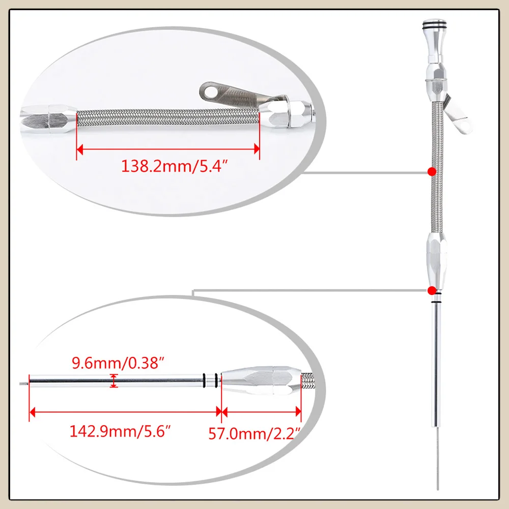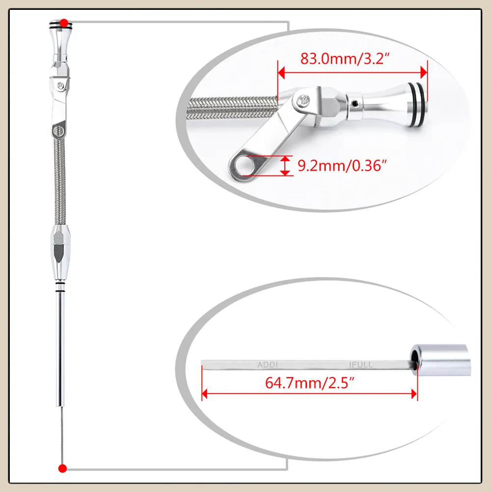 Stainless Braided Firewall Flexible Dipstick Engine Oil Dipstick Car Replacement For Chevy SB 265 283 327 350 383 400 SBC